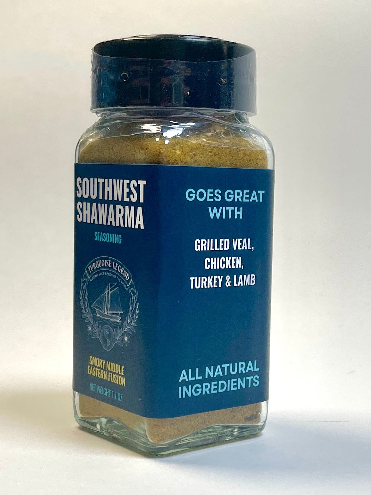 Marinate chicken, beef, lamb or even tofu in olive oil, lemon juice and a generous amount of Southwest Shawarma seasoning. Grill or roast until cooked through and serve in warm pita wraps or on top of rice bowls with your favorite toppings.